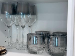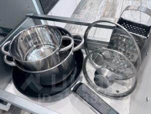 Полный набор посуды (кастрюли, сковорода, тарелки, чашки, бокалы)