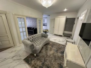 Квартира выполнена с дизайнерским ремонтом и полностью готова к комфортному проживанию. В наличии вся необходимая мебель на кухне и в комнатах. Для вашего удобства установлена современная техника: кондиционер, холодильник, посудомоечная машина, телевизор и стиральная машина. В ванной комнате есть ванна, чтобы вы могли расслабиться после насыщенного дня.