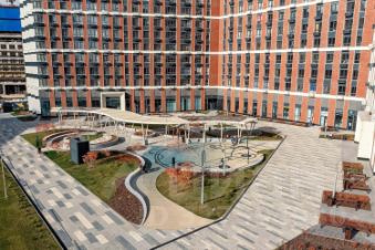 Закрытый благоустроенный двор без машин оснащен системой видеонаблюдения и круглосуточной охраной, вход на территорию осуществляется по системе электронных пропусков.