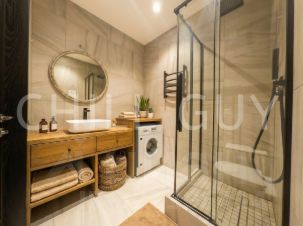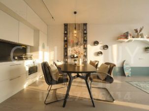 Большая гостиная с балконом и видом на город. Кухня со всей встроенной кухонной техникой, много мест для хранения. Мастер-спальня с приватным санузлом, ванной и тропическим душем. Отдельно санузел для гостей. Есть оборудованное пространство для удаленной работы из дома, а также читательский уголок.