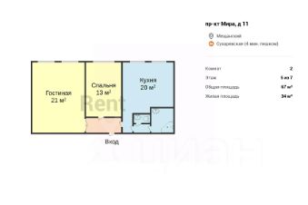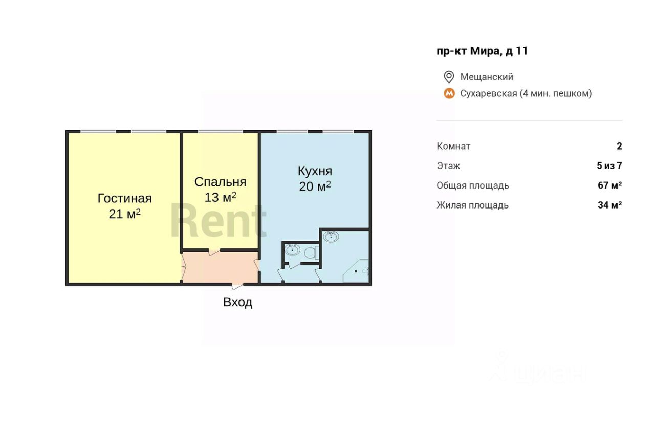 БЕЗ КОМИССИИ ДЛЯ АРЕНДАТОРА. Предлагается двухкомнатная квартира рядом с метро "Сухаревская". Планировкой предусмотрены гостиная, изолированная спальня с двойным стеклопакетом и большая кухня со столовой зоной. Кухонный гарнитур укомплектован набором встроенной техники, включая посудомоечную машину. Обустроена ванная комната с водонагревателем и стиральной машиной. Установлен кондиционер.