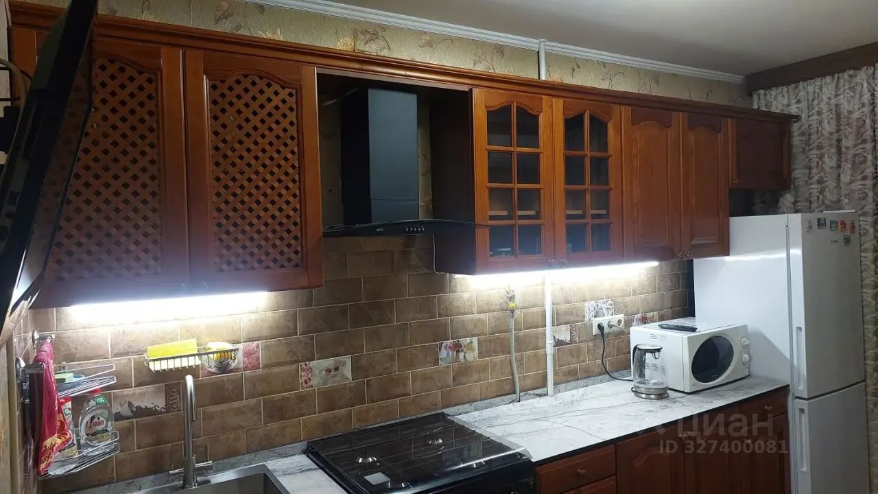 Сдается уютная 1-комнатная квартира в тихом районе, недалеко от метро Аминьевская. Общая площадь составляет 35 кв.м, жилая — 18 кв.м, а кухня — 10 кв.м. Квартира находится на 9-м этаже 12-этажного блочного дома, построенного в 1971 году. Высота потолков — 2.64 метра. Из окон открывается вид во двор.