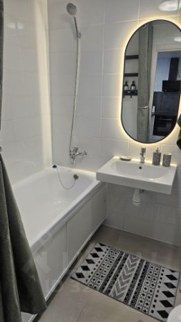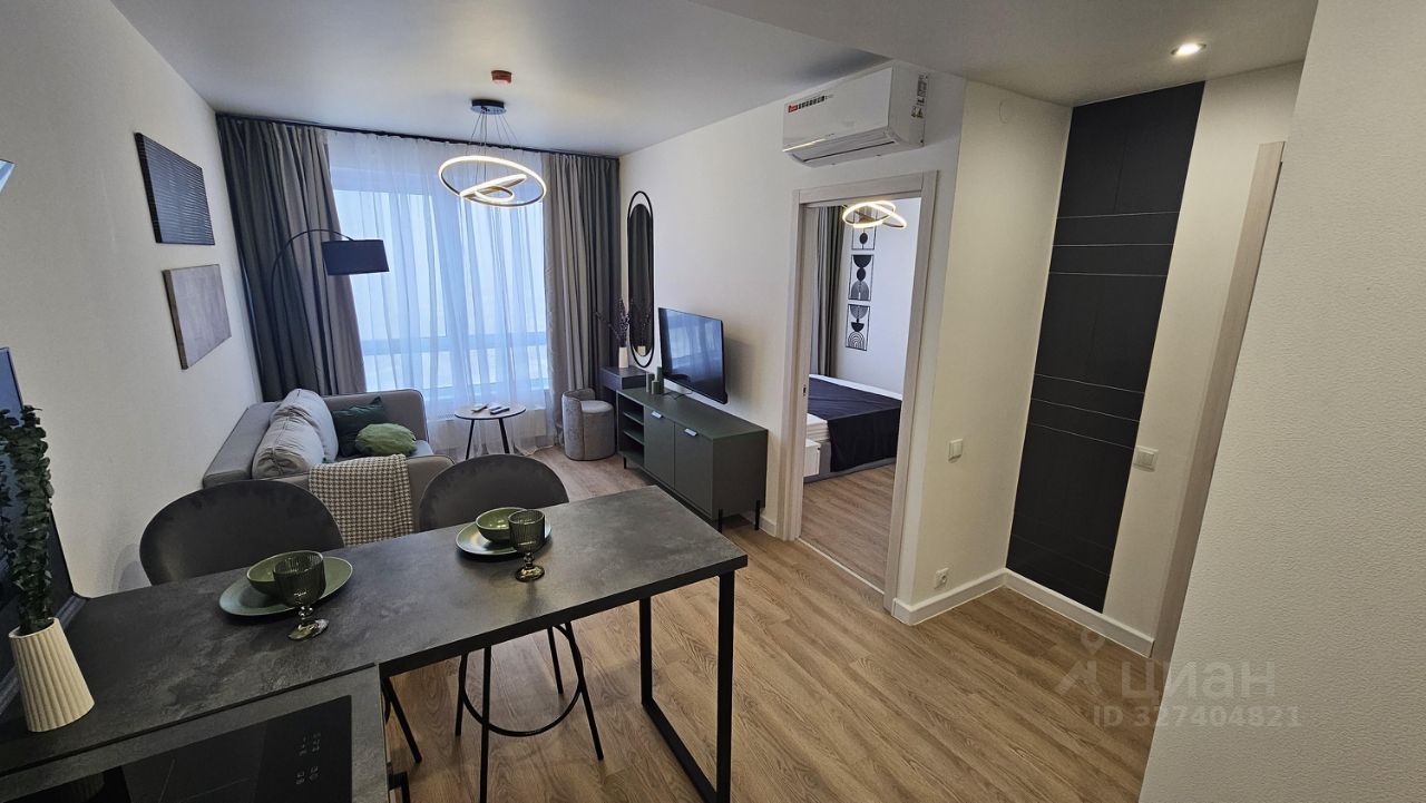 Квартира с современной отделкой в светлых тонах, полностью меблирована и оборудована всей необходимой бытовой техникой. СмартТВ, СВЧ, посудомоечная машина, духовой шкаф, вытяжка. Состоит из кухни - гостиной с раскладывающимся диваном и спальни с большой кроватью и шкафом купе, также имеется холл 3 кв.м с и просторный санузел с ванной, стиральная машина с функцией сушки, Потолки 2,7 м. кондиционер, высокоскоростной интернет. Пол - ламинат, стены декоративная штукатурка и покраска.