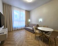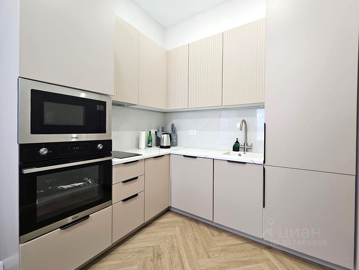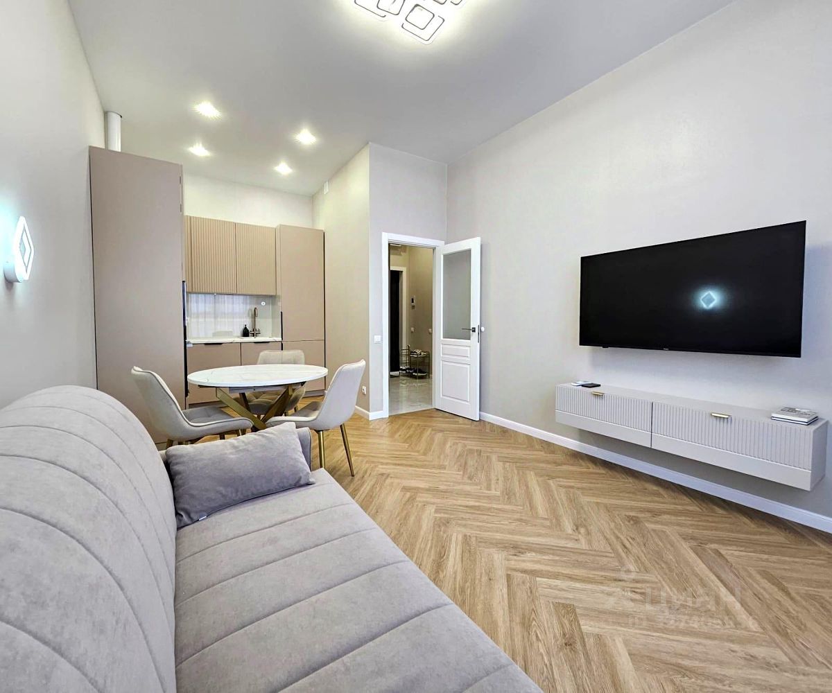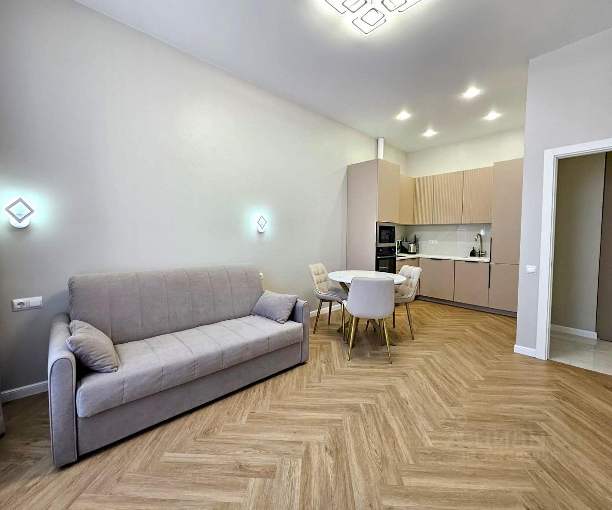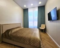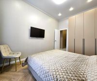 В квартире: оборудованная кухня переходящая в гостиную с раскладным диваном, спальня с большой кроватью и вместительным шкафом, совмещённый с/у.