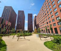 Вокруг большое количество магазинов, детских и спортивных площадок.