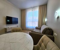 Укомплектована абсолютно всей необходимой мебелью и техникой, в том числе посудомойкой и кондиционером.