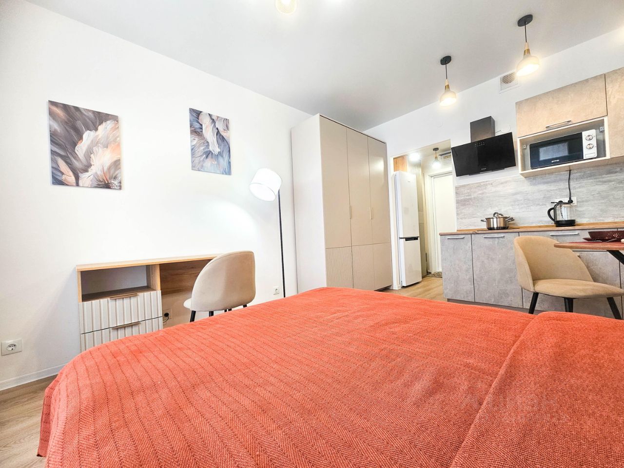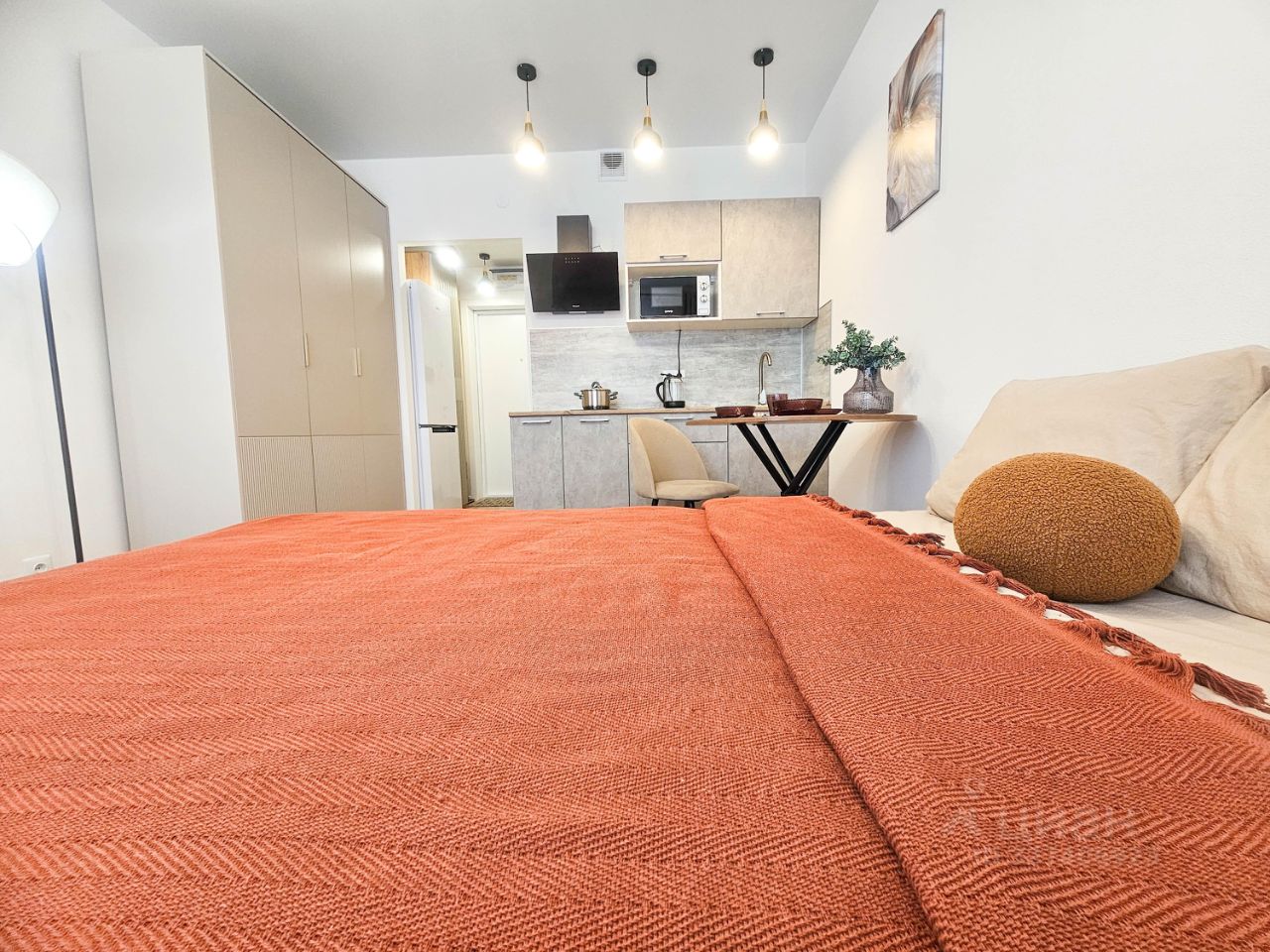 Студия. Есть двуспальная кровать с ортопедическим матрасом