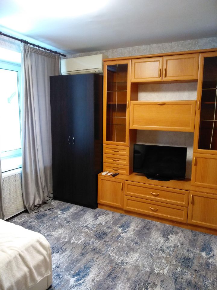 В квартире сделан косметический ремонт, она обставлена всем необходимым для комфортного проживания. Здесь есть кондиционер, холодильник, телевизор и стиральная машина. Санузел совмещённый, с ванной. Окна выходят во двор, что гарантирует тишину и покой.