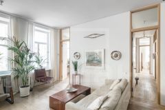 ID 47620: Очень красивая квартира в историческом доходном доме района Хамовники- собственный дизайн-проект семьи архитекторов. Планировка: просторный холл, кухня-гостиная в едином открытом пространстве с зонами столовой, гостиной и домашним кинотеатром с проектором и экраном; 3 спальни, две из которых с выходом на открытый балкон; две ванные комнаты. Высокие потолки, много света, двойные отреставрированные окна, фрамуги по всему коридору, что обеспечивает доступ света по всем помещениям. Много встроенных гардеробных и хозяйственных шкафов. Высокие потолки 3,2м, окна выходят во двор. Подъезд после ремонта, охрана, парковочное место во дворе. Наличие домашних животных ообсуждается индивидуально.