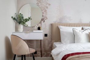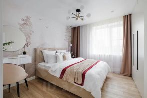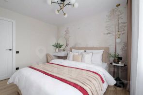 Роскошная спальня с двуспальной кроватью с подъёмным механизмом, большой встроенный шкаф, рабочее место.