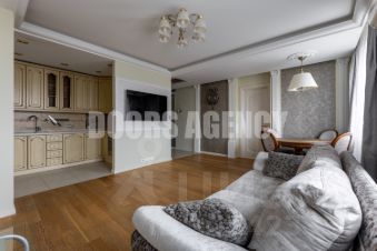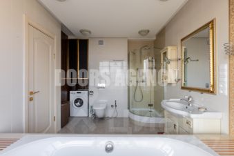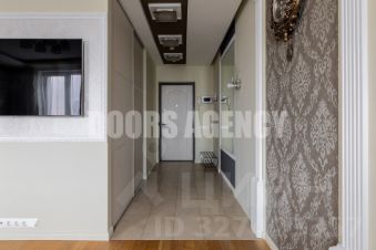 Планировка: кухня-гостиная, изолированная спальня с гардеробной (2 секции), санузел совмещенный с ванной и душем (панорамное остекление с видом на Москва-Сити). В квартире имеется вся необходимая техника, в том числе два телевизора, кондиционер, посудомоечная машина, духовой шкаф. Дизайнерский ремонт. Премиальные отделочные материалы, сантехника, мебель. В ванной комнате установлены теплые полы.