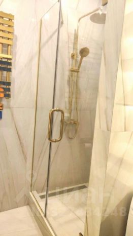 Санузел совмещен, оснащён просторной душевой кабиной, стиральной машиной, установлен водонагреватель.