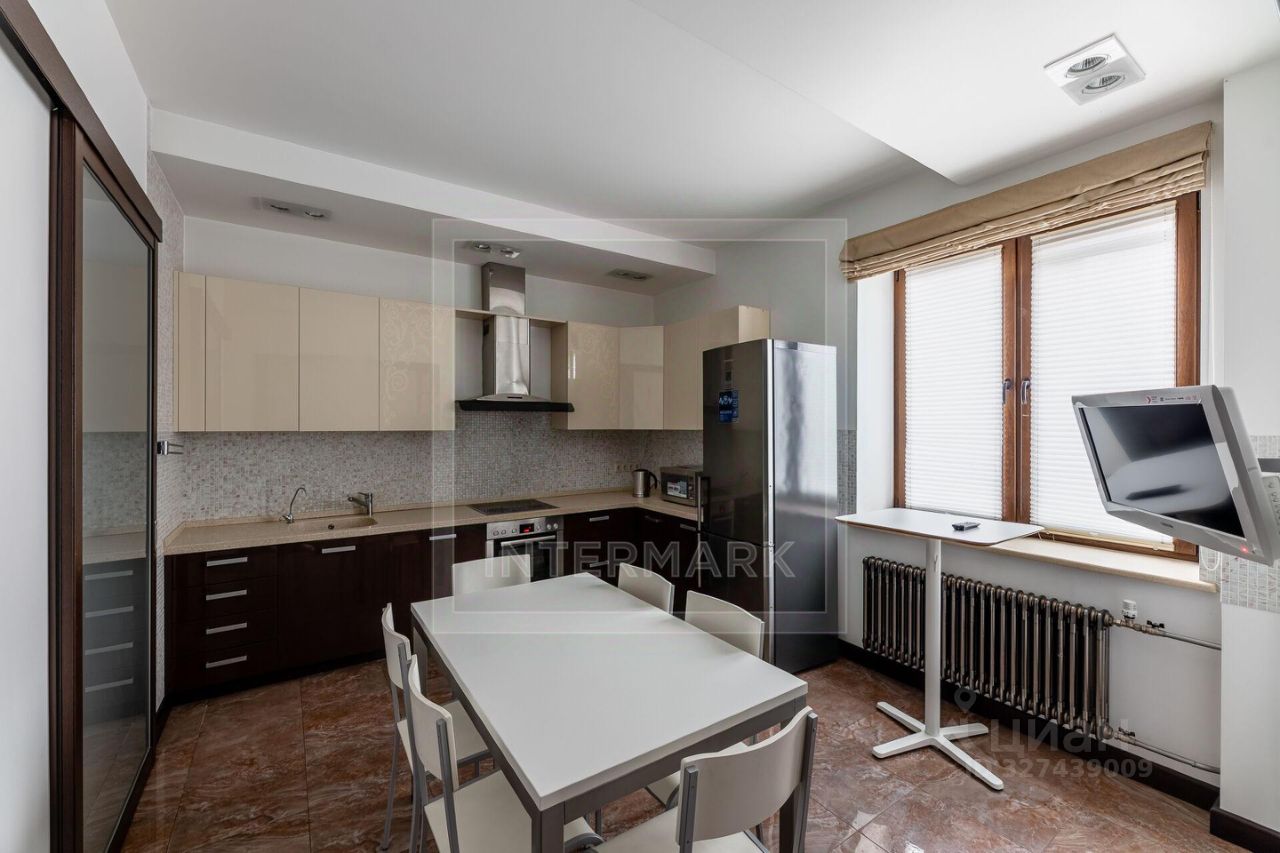 ID 39245. Просторная 3-комнатная квартира на 4 этаже ЖК бизнес-класса. Квартира оснащена необходимой для комфортной жизни бытовой техникой, качественной сантехникой. Общая площадь 160 кв. м. Планировка: студия гостиная-столовая-кухня, две спальни, кабинет, две гардеробные комнаты, ванная комната и гостевой туалет. Высота потолков 3,2 м. Из окон открываются виды на благоустроенную придомовую территорию, получившие призы на городском конкурсе благоустройства. Придомовая территория с ландшафтным дизайном закрыта от посторонних и находится под круглосуточной охраной. Презентабельная входная группа. Бесшумные скоростные пассажирский и грузовой лифты обеспечивают доступ к подземному паркингу. Одно место в паркинге включено в стоимость. Можно с детьми.