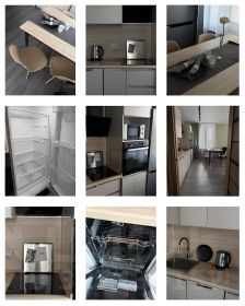 - Кухня: Современный гарнитур, холодильник, плита, микроволновая печь, электрочайник, посудомоечная машина, духовой шкаф.