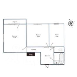 - Общая площадь: 58,4 м2, гостиная 18 м2, кухня 10 м2, спальня 16 м2