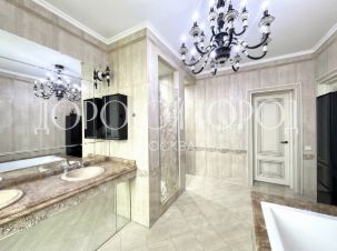 - мастер-спальня с собственной гардеробной и большой ванной зоной с окном (ванна и душевая), выполненной в мраморе от пола до потолка
