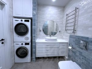 Квартира ПОЛНОСТЬЮ ОБОРУДОВАНА бытовой техникой BOCSH: посудомоечная машина, микроволновая печь, индукционная плита, духовой шкаф, встроенный холодильник, стиральная машина, сушильная машина. Телевизор Samsung 80см.