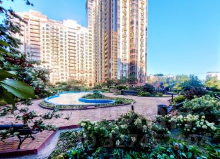 - закрытая территория ЖК, двор без машин на стилобате, ландшафтное озеленение, фонтан, три детских площадки