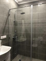 Внутри вас ждет дизайнерский ремонт и продуманная планировка. В апартаментах есть все необходимое для комфортной жизни: современная техника (кондиционер, холодильник, посудомоечная машина, телевизор, стиральная машина) и удобная мебель как на кухне, так и в комнате. Окна выходят во двор, что обеспечивает тишину и спокойствие. Совмещенный санузел оборудован ванной, что особенно удобно для расслабления после долгого дня.