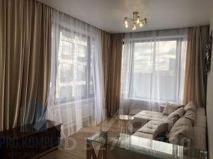 В квартире выполнен качественный ремонт в светлых и пастельных тонах. Функциональная планировка: просторная кухня-13.3 кв м, две изолированные комнаты: гостиная-21.5 кв м, спальня-10.6 кв м, два санузла, гардеробная. Квартира полностью оснащена всей необходимой мебелью и техникой для комфортного проживания: посудомоечная машина, стиральная машина, холодильник, духовой шкаф, плита, кондиционер, интернет-WIFI. Панорамные окна. Высокие потолки.