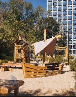 В ЖК закрытая красивая территория с зонами отдыха, столами для работы, консьерж сервис, круглосуточная охрана, видеонаблюдение, отдельные комнаты для велосипедов и колясок, стильное лобби с диванчиками и каминами, есть подземный паркинг.