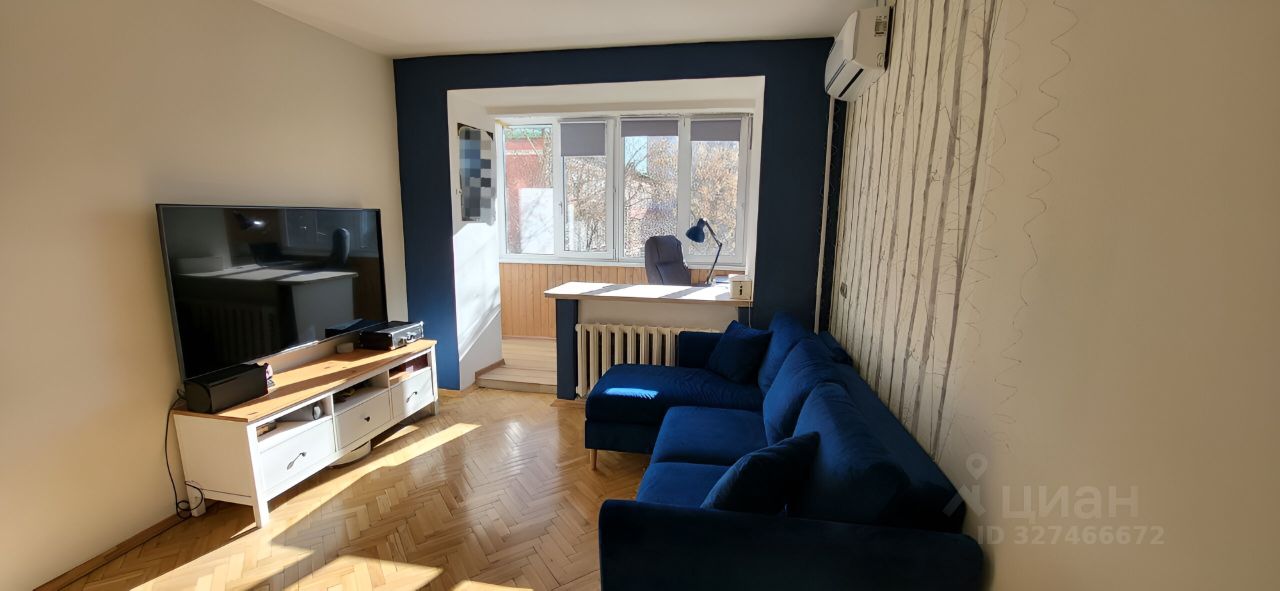 Площадь: 43 м² (кухня — 8 м², комната — 20 м², утеплённая лоджия — 6 м², присоединённая к комнате).
