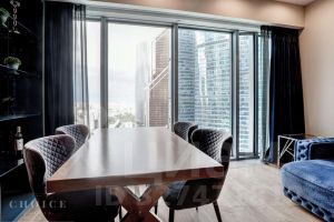 Предлагается на аренду двухкомнатная квартира на 30 этаже башни "ОКО" в ММДЦ "Москва -Сити" с потрясающим панорамным видом. Кухня-гостиная, спальня, гардеробная и два санузла. Квартира с отделкой и полностью укомплектована мебелью.