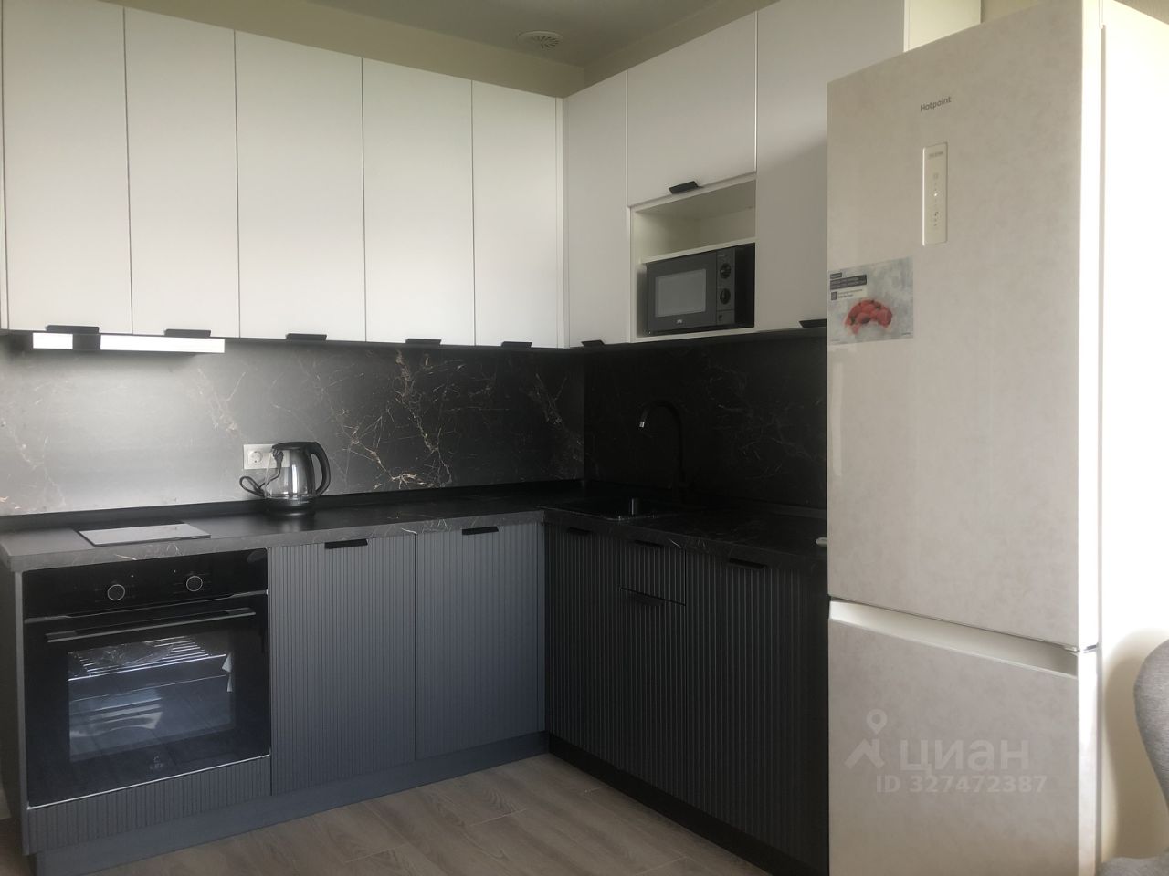 Перекрасили обои после застройщика, установили кухню, новую технику, новую мебель.
