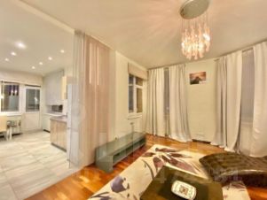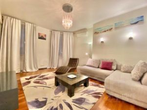 Квартира оформлена в дизайнерском стиле, который сочетает в себе элегантность и функциональность. В комнатах и на кухне есть вся необходимая мебель: удобные диваны, вместительные шкафы, стильные столы и стулья. Кухня оснащена современной техникой, включая холодильник, посудомоечную машину и кондиционер. В ванной комнате установлена душевая кабина. Также есть стиральная машина и телевизор. Для вашего удобства в квартире проведены интернет и телефонная связь.