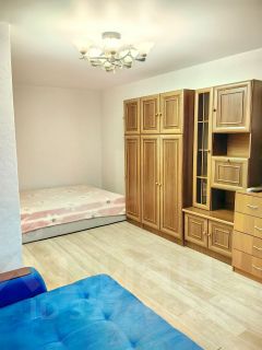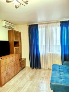 В квартире выполнен качественный евроремонт. Просторная жилая комната площадью 19 кв. м обставлена необходимой мебелью и техникой: кондиционер и телевизор, двуспальная кровать (с Подъёмным механизмом, где есть пространство для хранения вещей), и НОВЫМ МАТРАСОМ ортопедическим "АСКОНА".Также в комнате есть раскладной диван.