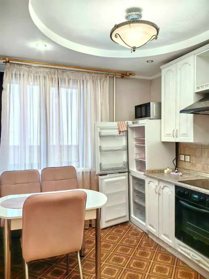 Кухня, площадью 10 кв. м, оснащена всей необходимой техникой: здесь есть холодильник, стиральная машина, посуда, чайник. Высота потолков составляет 2.48 метра, что создает ощущение простора. Окна выходят во двор, поэтому в квартире всегда тихо и спокойно. Наличие БОЛЬШОЙ ЛОДЖИИ позволяет наслаждаться свежим воздухом и красивыми видами. На лоджии включается свет.