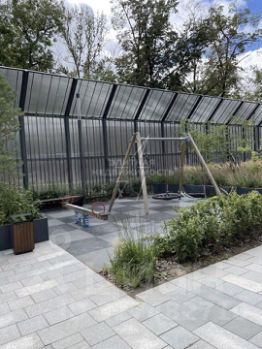 Выход на стилобат, для всех жильцов комплекса, летом удобно для шашлыков и посиделок с друзьями.