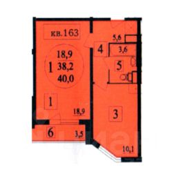 Общая площадь 37,8 м2, кухня 10м2, комната 18,9 м2