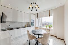 В квартире: С мебелью, Посудомоечная машина, Стиральная машина, Бойлер, Душевая кабина, Теплые полы, Кондиционер, Охрана, Интернет, Балкон, Видовая квартира, Изолированная кухня, Кухонная мебель, Окна на улицу, Окна во двор
