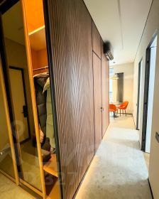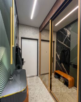 В коридоре предусмотрены большие вместительные шкафы, а также крючки быстрого доступа для вывешивания сезонной одежды, консоль для ключей, пуфик.