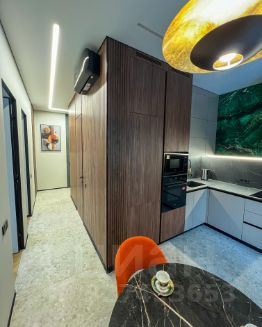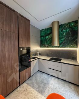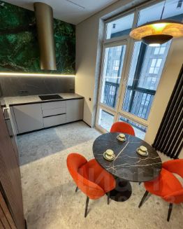 Полностью оборудованная для удобства в приготовлении еды кухня, имеется встроенный холодильник с морозильной камерой, духовка, микроволновая печь, посудомоечная машина, вытяжка, обеденный стол, удобные стулья, индукционная варочная панель.