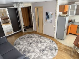 В квартире сделан евроремонт, в наличии вся необходимая мебель и техника. На кухне есть современный холодильник, а также удобная мебель для приготовления и приёма пищи. В комнате уютная обстановка, позволяющая сразу заселиться и жить комфортно. Ванная комната оборудована ванной и совмещена с санузлом. Окна квартиры выходят во двор, что обеспечивает тишину и спокойствие.