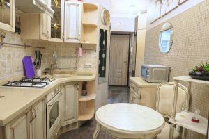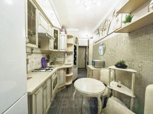 В КУХНЕ установлен итальянский кухонный гарнитур в классическом стиле, кремового цвета, 2-х камерный холодильник BOSCH, варочная панель и духовой шкаф De'Longhi, стиральная машина автомат LG. Есть электрочайник BOSCH, кофеварка, увлажнитель воздуха, пылесос LG, утюг с паровой установкой BOSCH , гладильная доска, сушка для белья и прочее ( всё, что нужно для комфортной жизни ).