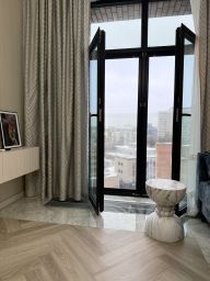 Новый ремонт, еще никто не жил. Стильная квартира с удобной планировкой, продуманным хранением и красивым видом из окон. Есть кухня-гостиная, отдельная гардеробная, просторный санузел и отдельная спальня с рабочим местом и большим просторным шкафом. В кухне установлена посудомоечная машина, есть кондиционеры. Отдельный плюс квартиры - приятный вид из окон в сторону почтовой улицы, из окон открывается вид на город, никто не заглядывает в окна так как высокий этаж. Есть так же небольшой балкон, а в гостиной окна в пол и оба с механизмом для открытия. Просторный санузел с ванной и разными сценариями освещения.