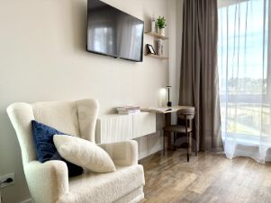 Все есть (wi-fi, кондиционер, посудомоечная машина, стиральная машина с сушкой, телевизор, встроенный холодильник, духовой шкаф, варочная панель, микроволновая печь, видеодомофон, установлены фильтры для воды).