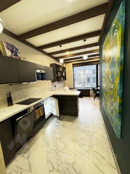 Квартира оборудована всей необходимой техникой: кондиционер, холодильник, посудомоечная и стиральносушильная машины, робот-пылесос, микроволновка, а также телевизор. Окна выходят на улицу, что обеспечивает много естественного света.