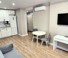 В квартире сделан качественный евроремонт. Комнаты обставлены необходимой мебелью, а просторная кухня площадью 18 кв. м оборудована современной техникой: кондиционеры, холодильник, посудомоечная машина, стиральная машина и телевизоры, духовой шкаф. Санузел совмещённый, с ванной, что позволяет расслабиться после рабочего дня. Окна выходят во двор, поэтому в квартире всегда тихо и спокойно.