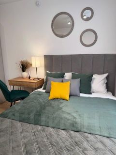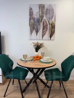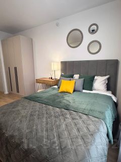 квартира мебелирована, кухонный гарнитур с доводчиками и выдвижными ящиками, с подсветкой, с вытяжкой, индукционная плита. Кровать c подъемным механизмом, в красивом цвете, с ортопедическим матрасом, телевизор, холодильник, стол раздвижной с мягкими, удобными стульями.