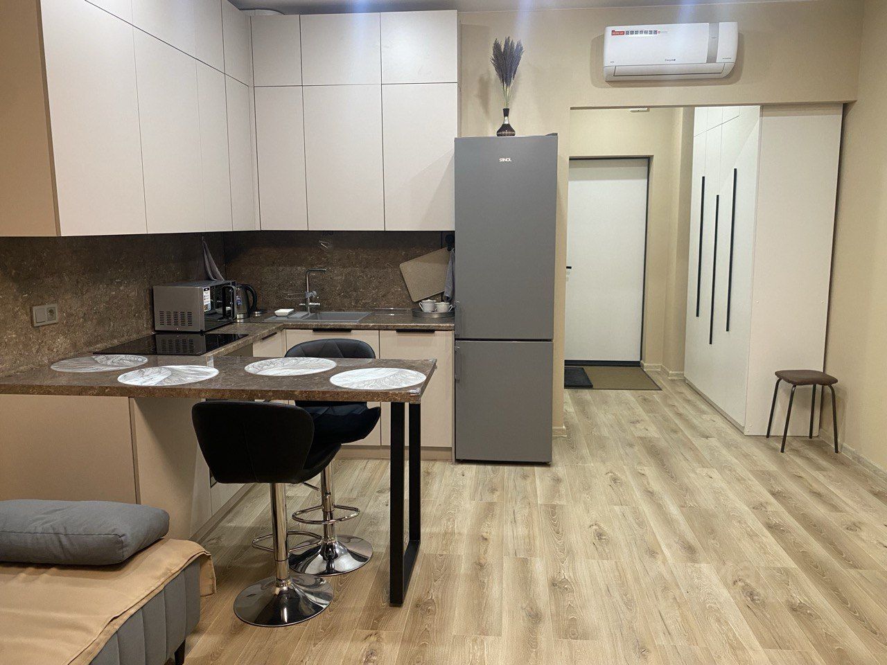 — современная техника: холодильник, плита, микроволновка, стиральная машина, кондиционер, бризер, телевизор;