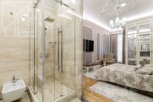 Планировка: просторная гостиная, объединенная с кухней, основная спальня со своим санузлом с ванной, вторая спальня, совмещенный санузел с душевой кабиной, прихожая. Квартира полностью меблирована, оснащена всей необходимой бытовой техникой для комфортного проживания. Окна выходят в тихий двор. Высокие потолки. Панорамные окна.