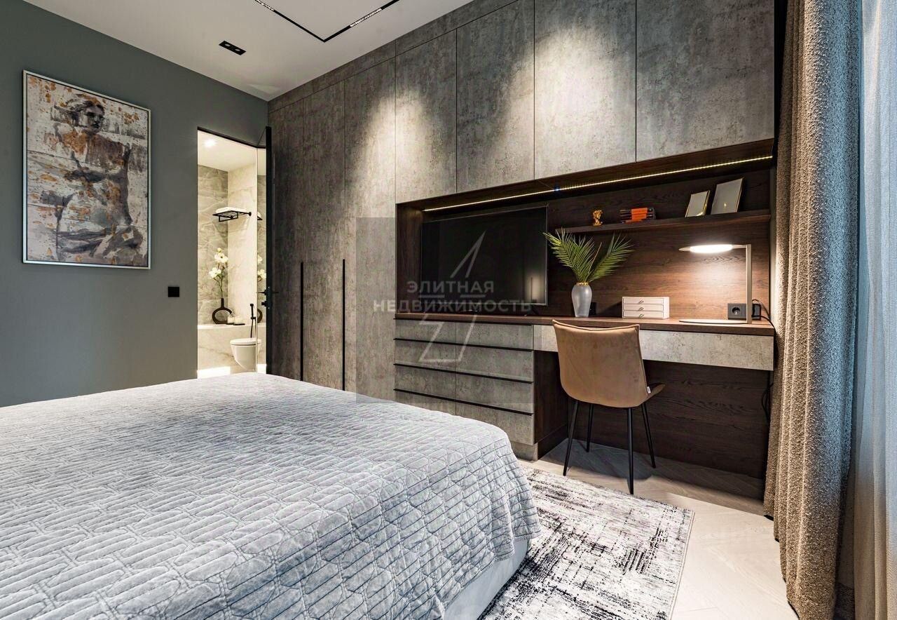 Просторная мастер-спальня имеет выход на лоджию с видом в тихий двор, собственную ванную комнату и кровать с премиальным матрасом. Вместительный шкаф заменит вам гардеробную комнату. Также в квартире имеется гостевой санузел с душевой кабиной. И вместительная гардеробная для верхней одежды и обуви в прихожей. Сделана шумоизоляция, защита от протечек, умные шторы, высокоскоростной интернет.