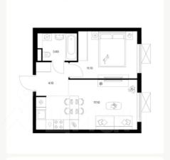 - кухня-гостиная 17,0 кв.м., зона с встроенной техникой;
