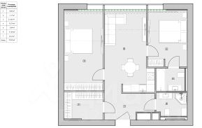 Апартаменты расположены на 8 этаже 28-этажного монолитного дома, построенного в 2019 году. Общая площадь составляет 73кв. м, из которых 25 кв. м занимает кухня. Высота потолков 3 метра. В квартире есть три комнаты, окна выходят во двор, что гарантирует тишину и спокойствие.