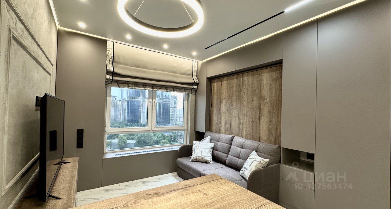 Сдается уютная студия в новом жилом комплексе по адресу: Москва, Большая Очаковская улица, 2. Квартира расположена на 14 этаже 32-этажного дома, построенного в 2022 году. Высота потолков составляет 2.62 метра, что обеспечивает ощущение простора и света.