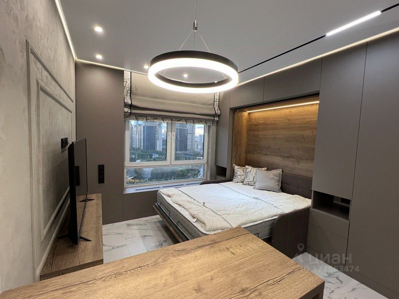 Квартира с дизайнерским ремонтом, полностью готова к проживанию. В студии есть вся необходимая мебель: удобная кровать, шкафы для хранения, обеденный стол, телевизор с Алисой для просмотра кино и сериалов.